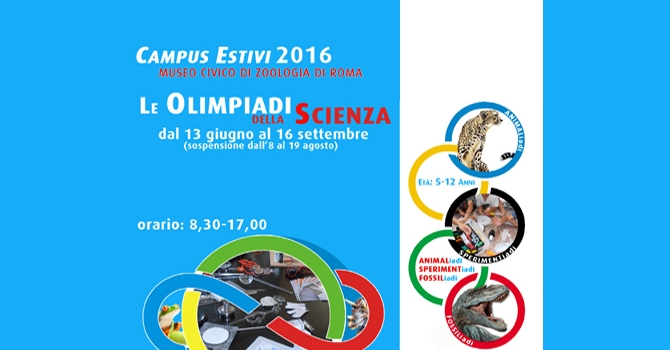 Quest’anno un nuovo appuntamento estivo porterà gli avventurosi partecipanti (dai 5 ai 12 anni) a misurarsi con i record della scienza per trascorrere settimane da campioni!La natura e il mondo animale sono pieni di sorprese e di meraviglie. Volete sapere chi nuota più velocemente? o qual è l’animale più possente? e a chi spetta il record del salto in alto? Non perdetevi le gare all'ultimo respiro di un'edizione molto speciale delle olimpiadi: quelle della scienza e del mondo animale. Dal 13 giugno al 16 settembre diverse settimane olimpioniche con emozionanti attività scientifiche ed avvincenti escursioni vi aspettano al Museo di Zoologia.